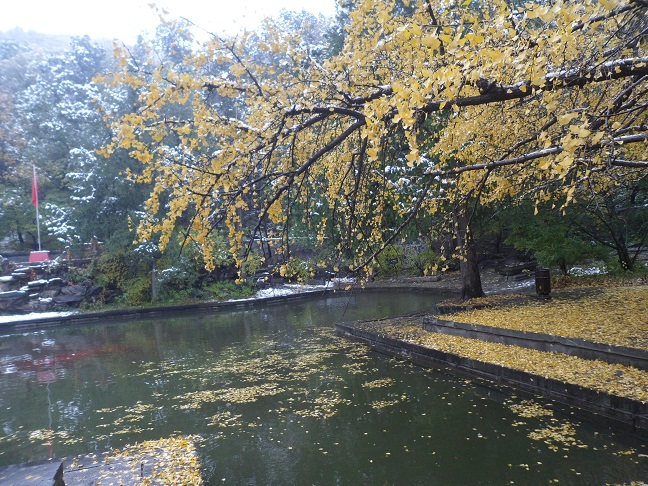 香山公園位于北京西北郊小西山山脈東麓,距城20公里,占地160公頃,是一座著名的具有皇家園林特色的大型山林公園。到達香山是午后,雪已經(jīng)開始變小,我們順著香山左側(cè)而上。一路上,青松高大挺拔,古樹委婉嫵媚,銀杏燦爛鋪地,紅葉時而飄落,寺院臺閣矗立,都說香山楓葉紅似火,實則登上望廬峰,俯身一望,天山一色,雪霧彌漫,也是相當(dāng)?shù)膲延^。