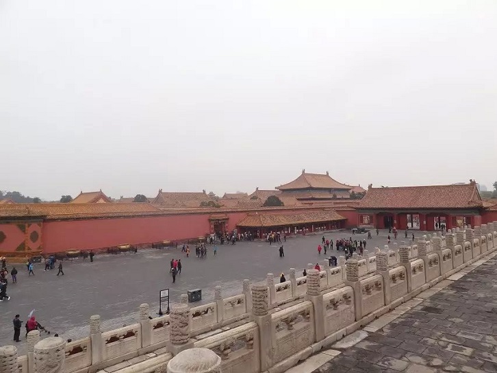 第三天的行程開始的比較早。為了占據(jù)觀看升旗的最佳位置,我們一行相約5點出發(fā)。觀看莊嚴(yán)的升旗儀式后,便馬不停蹄的趕去毛澤東紀(jì)念堂排隊,瞻仰中國人民的偉大領(lǐng)袖毛主席。隨后便穿過金水橋,從午門進入宏偉壯麗的紫禁城。故宮宮殿是沿著一條南北向中軸線排列,三大殿、后三宮、御花園都位于這條中軸線上,并向兩旁展開,南北取直,左右對稱,東西六宮都自成一體,各有宮門宮墻,相對排列,秩序井然。走進紫禁城,立馬被氣魄宏偉,規(guī)劃嚴(yán)整,雄渾壯觀的宮殿與廣場所驚嘆。其中太和殿坐落在紫禁城對角線的中心,四角上各有十只吉祥瑞獸,生動形象,栩栩如生,象征封建政權(quán)至高無上。御花園里有歲寒不凋的蒼松翠柏,有秀石迭砌的玲瓏假山,樓、閣、亭、榭掩映其間,幽美而恬靜。走進這座宮城,手撫著漢白玉,仰望著宮殿,一磚一瓦,一石一木都似乎在訴說著這座宮城的故事,那早已遠去的皇家遺韻。