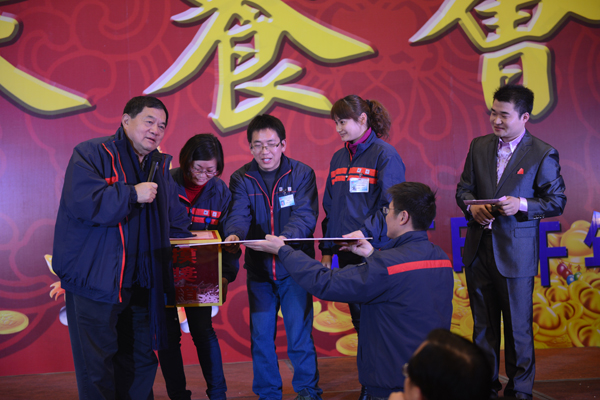 緊接著,省臺辦歐陽主任、九江市委馮副書記、瑞昌市委古小平書記和省政府崔琳參事先后上臺致辭,幾位領(lǐng)導(dǎo)紛紛贊揚(yáng)了亞泥的業(yè)績,肯定了亞泥對地方經(jīng)濟(jì)的貢獻(xiàn),并祝愿亞泥事業(yè)萬馬奔騰,龍馬精神。歐陽主任、馮副書記、崔參事還分別向徐董事長和張副董事長致贈春節(jié)禮物,表達(dá)對兩位先生敬業(yè)精神的敬佩。