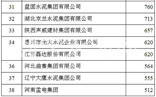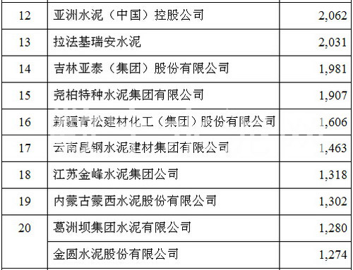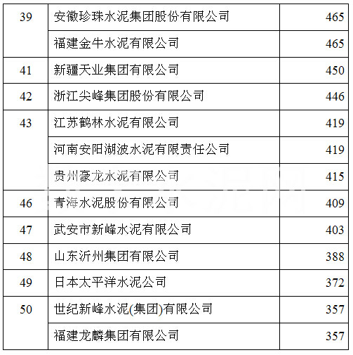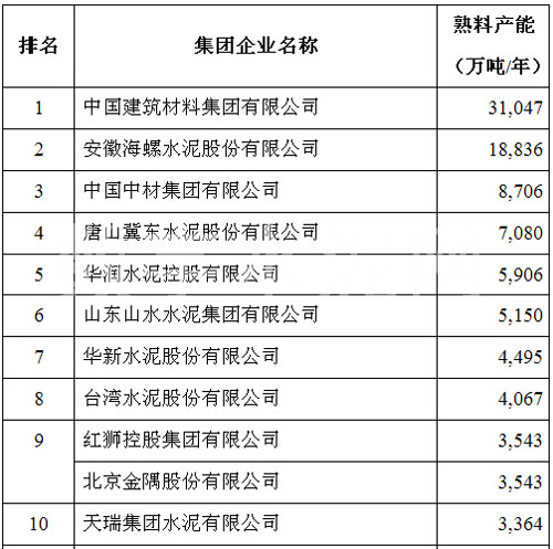 在2015’中國(guó)國(guó)際水泥峰會(huì)上,中國(guó)水泥協(xié)會(huì)公布了2015年全國(guó)水泥熟料產(chǎn)能前50家企業(yè)排名,中國(guó)建材以3.1億噸的年熟料產(chǎn)能位居榜首,海螺水泥、中材集團(tuán)分別以1.88億噸和8706萬(wàn)噸的年熟料產(chǎn)能位列第二和第三,亞泥(中國(guó))位列第十二位。