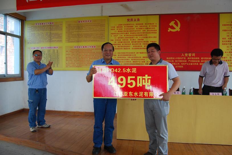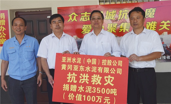 黃岡亞東抗洪救災捐贈水泥3500噸,價值100萬元.